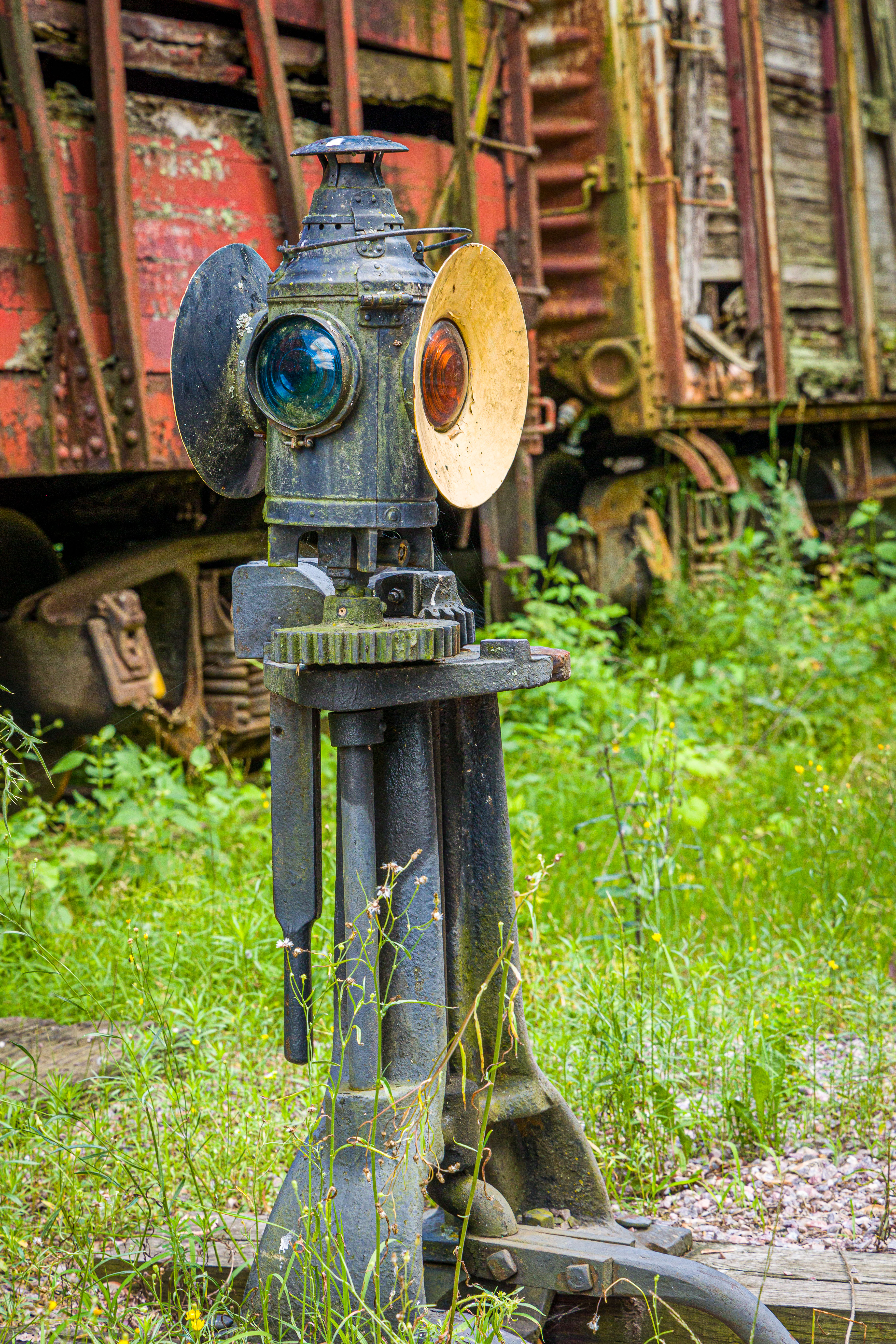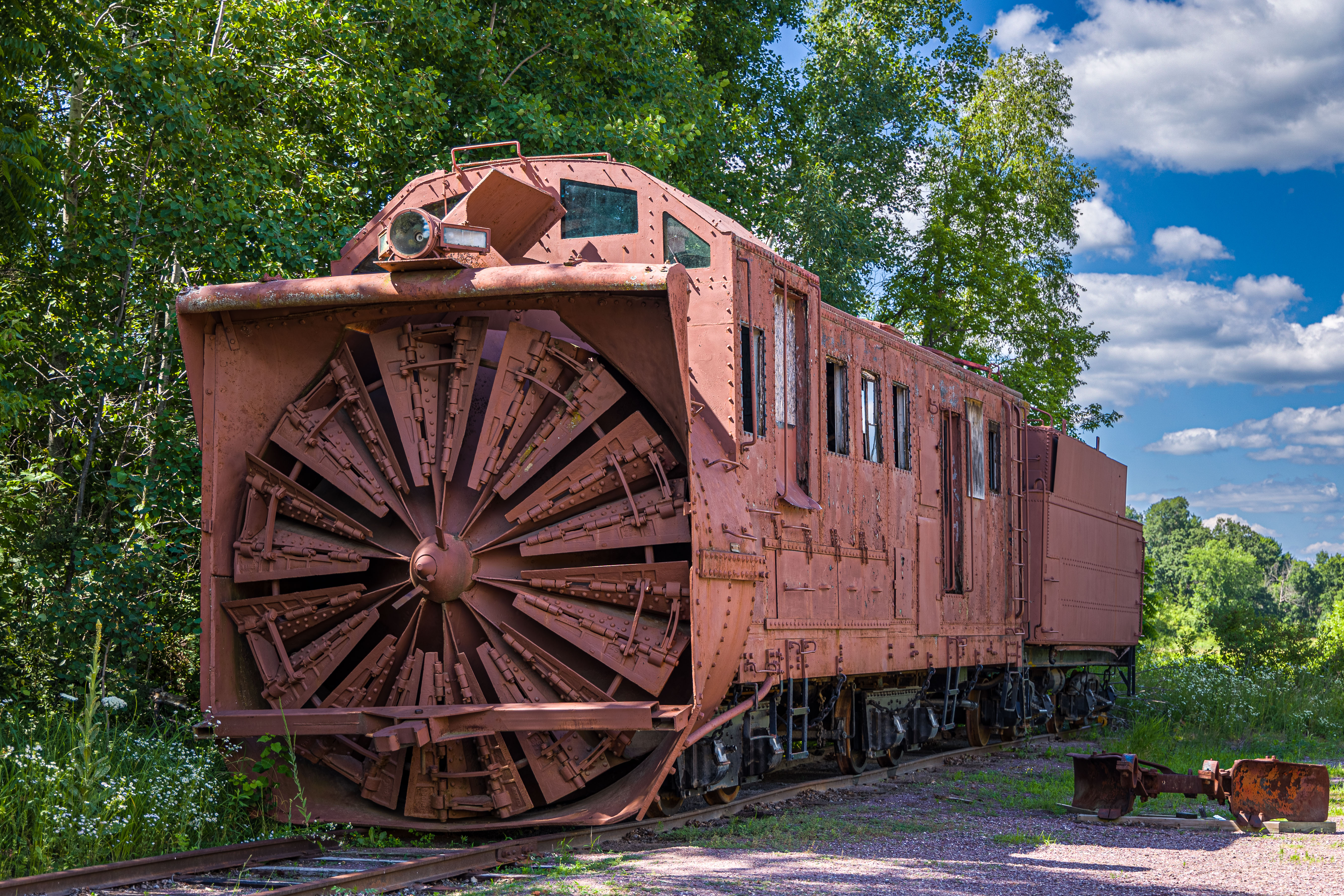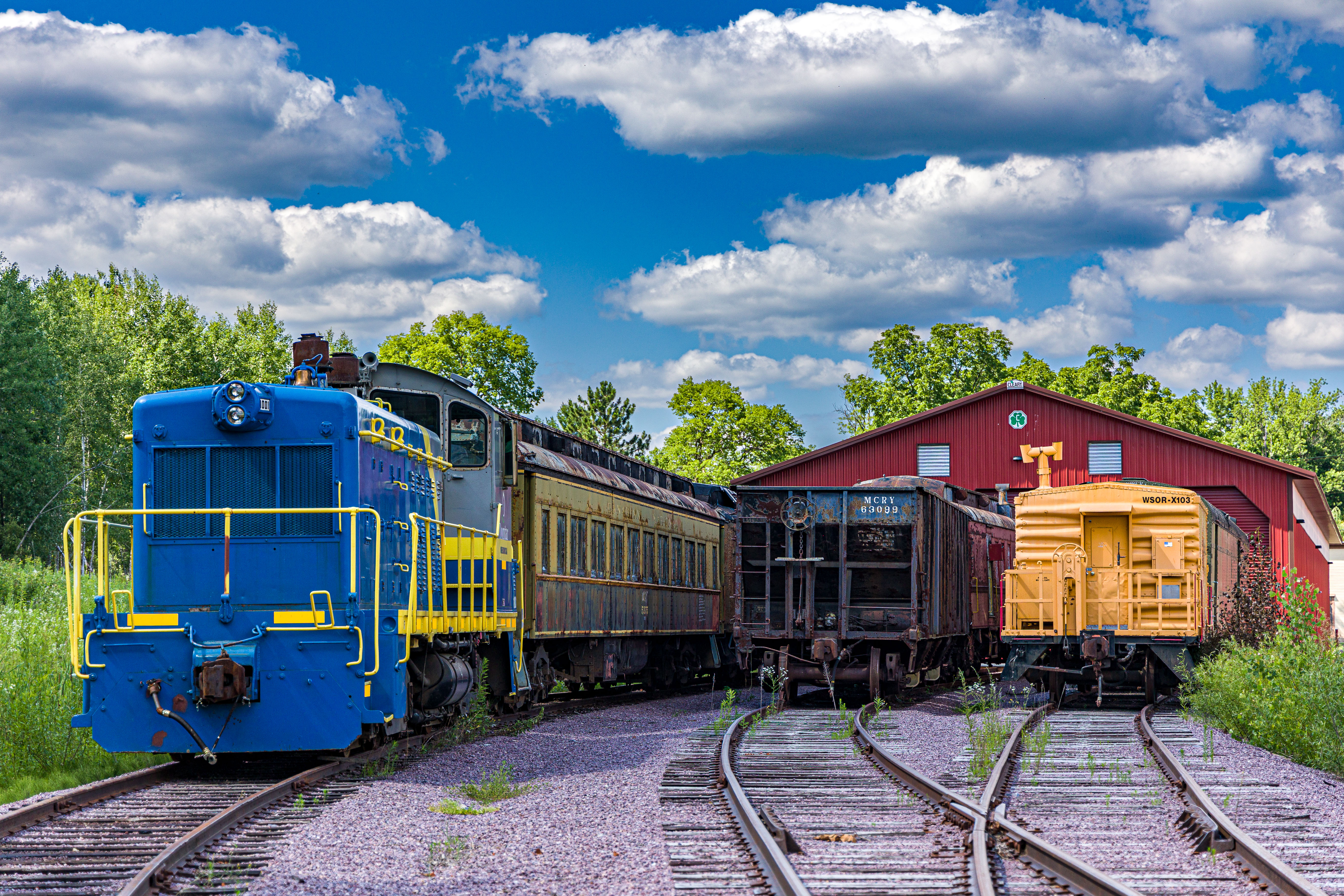 The Mid-Continent Railway Museum's collection emphasizes the preservation of railroad items operated in the upper Midwest from the period of 1880–1916, what the organization refers to as the "Golden Age of Railroading" The museum has 13 steam and 7 diesel locomotives and over 100 other pieces of rolling stock. The museum has the largest collection of wooden passenger cars in the United States as well as being home to five of only six surviving wooden boxcars built by the Mather Stock Car Company and the nation's last surviving fish car, Wisconsin Fish Commission "Badger Car #2" Many of these shots are from wandering around "the boneyard" of decommissioned engines and rolling stock in various states of disrepair and salvage.