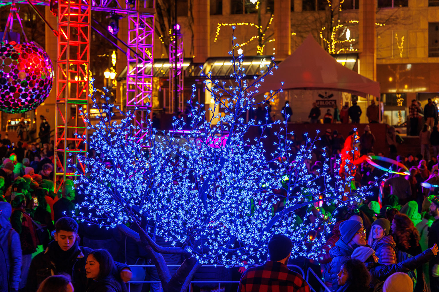 The seventh annual Portland Winter Light Festival takes place at sites across Portland, with anchor installations located at Pioneer Courthouse Square, the World Trade Center, and Electric Blocks at SE 2nd & Clay. Over 100 art installations will be viewable across all of Portland!