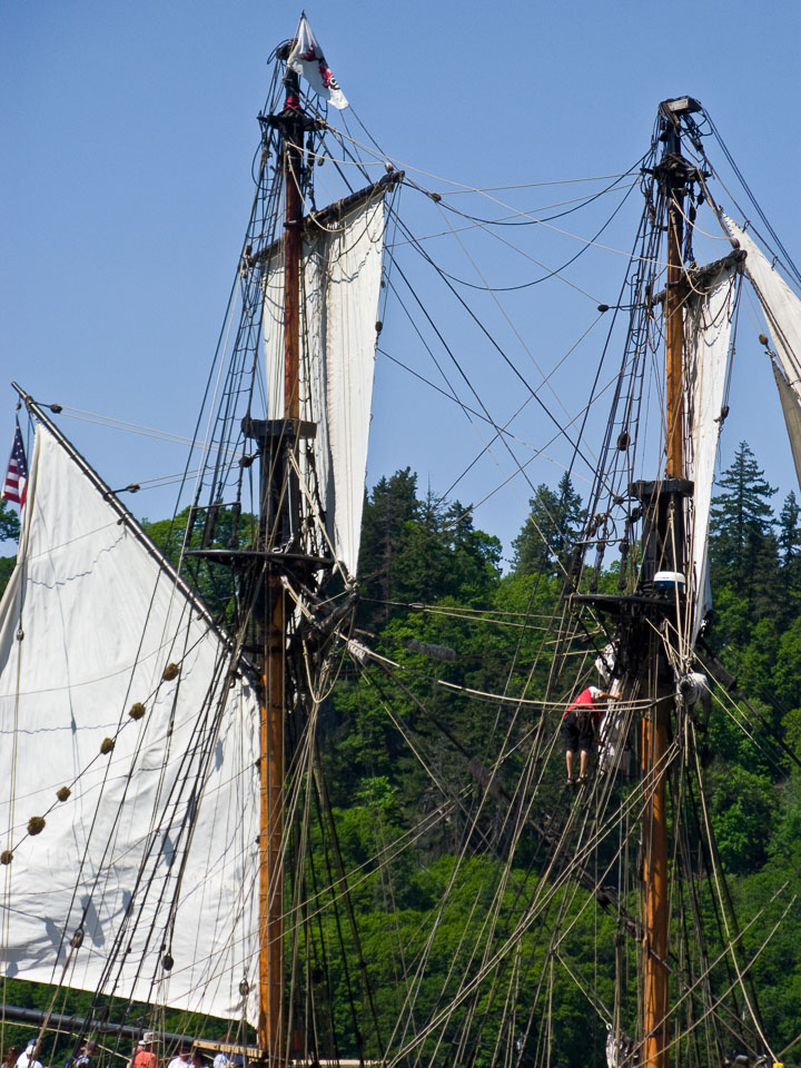 Images of the Lady Washington and Hawaiian Chieftain in Hood RIver, OR, including a visit to WAAAM and aerial photos