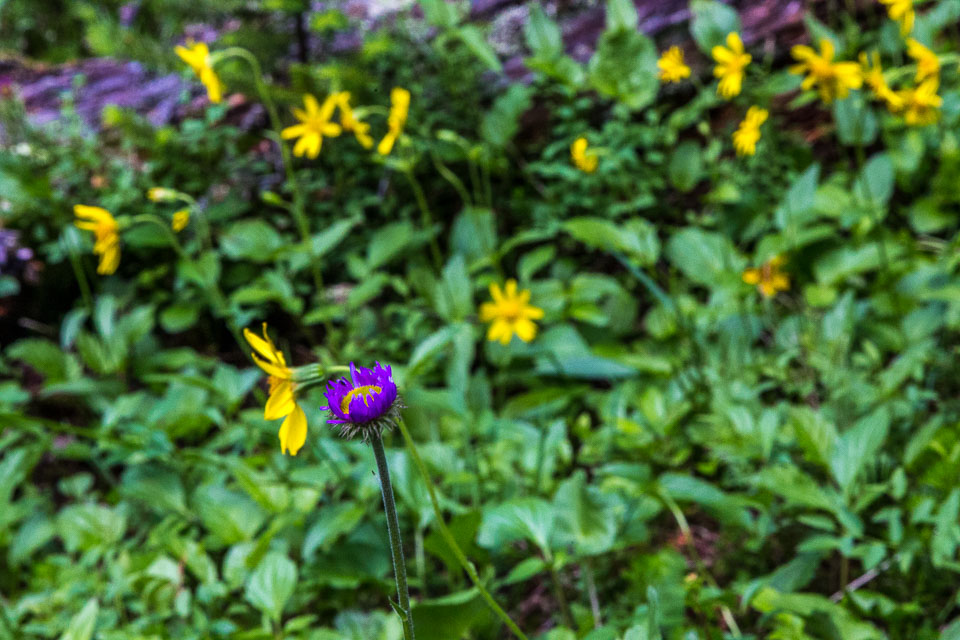 A close up view of the north face of Mt. Edith Cavell is visible after a short hike to Cavell Meadows. The hanging Angel Glacier is visible from Cavell Meadows, which spills over a 300 metres (984 ft) cliff on the north face. The remnants of Ghost Glacier, which fell in August 2012 can still be seen high on the mountain