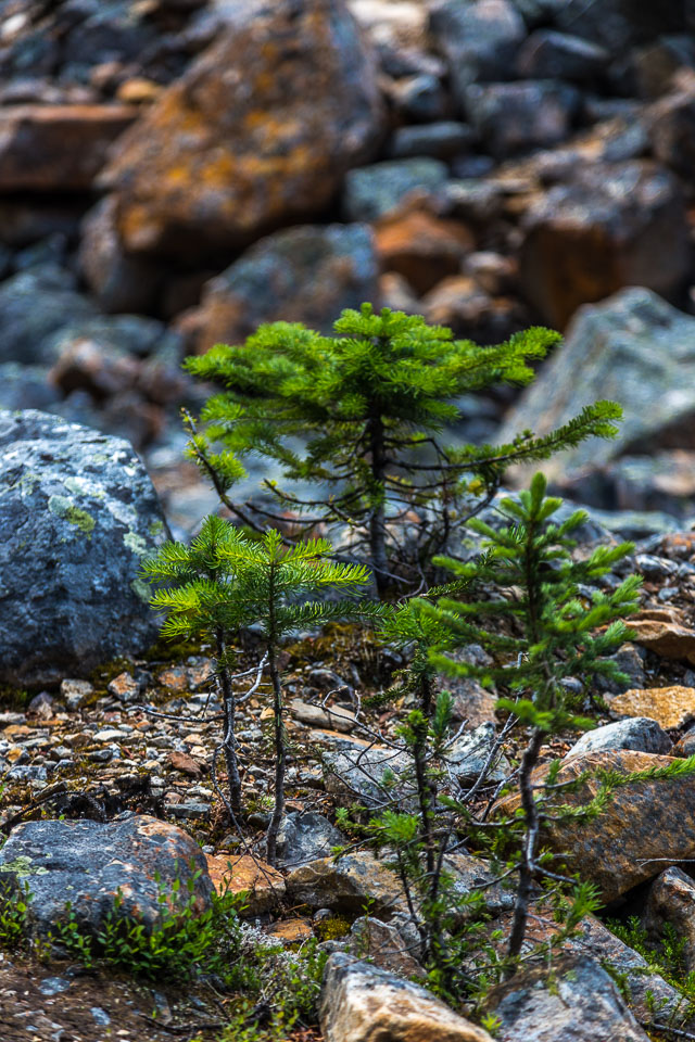 A close up view of the north face of Mt. Edith Cavell is visible after a short hike to Cavell Meadows. The hanging Angel Glacier is visible from Cavell Meadows, which spills over a 300 metres (984 ft) cliff on the north face. The remnants of Ghost Glacier, which fell in August 2012 can still be seen high on the mountain