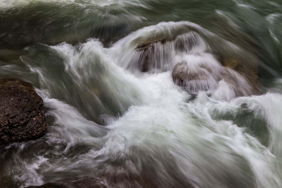Flowing out of Medicine Lake, the Maligne River flows about 15 kilometers upstream as a full size river, but very quickly disappears into seeps in the ground and completely vanishes from the surface not far from the lake for most of the year. The smaller streams that feed the valley below that point rebuild the river by the time it reaches the top of the canyon. As the river drops down into the canyon it intersects the bedrock layers where the underground waters flow. Numerous large underground streams join and greatly increase the flow.