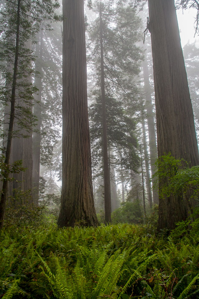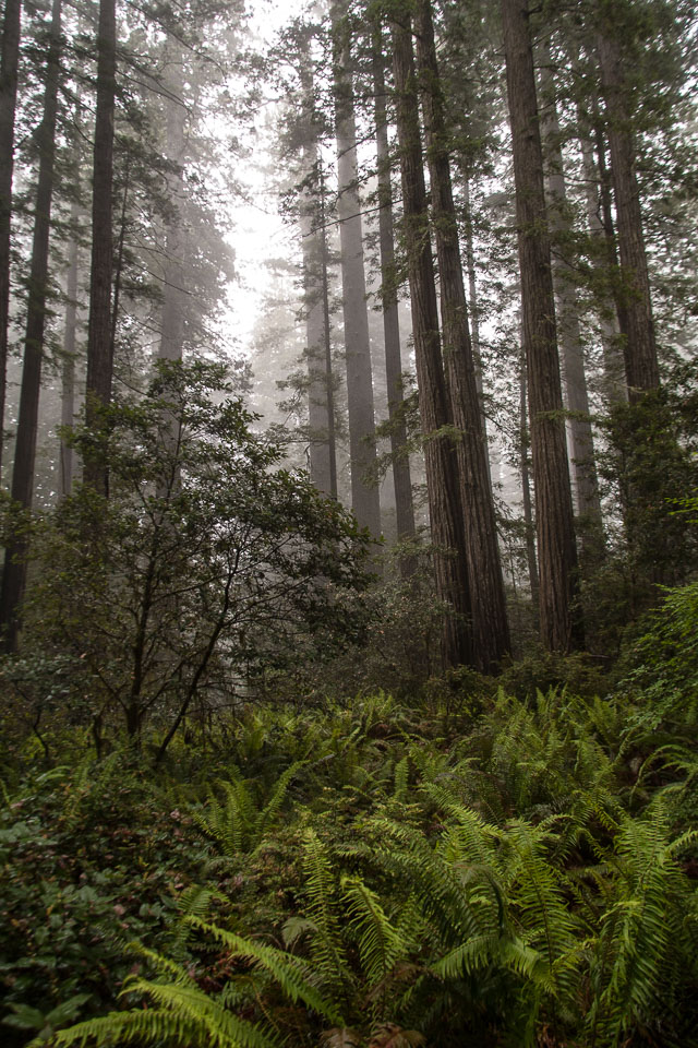Redwoods in the mist, Redwoods National Park. Taken on June 25, 2012. Filename: 20120625-IMG_5186