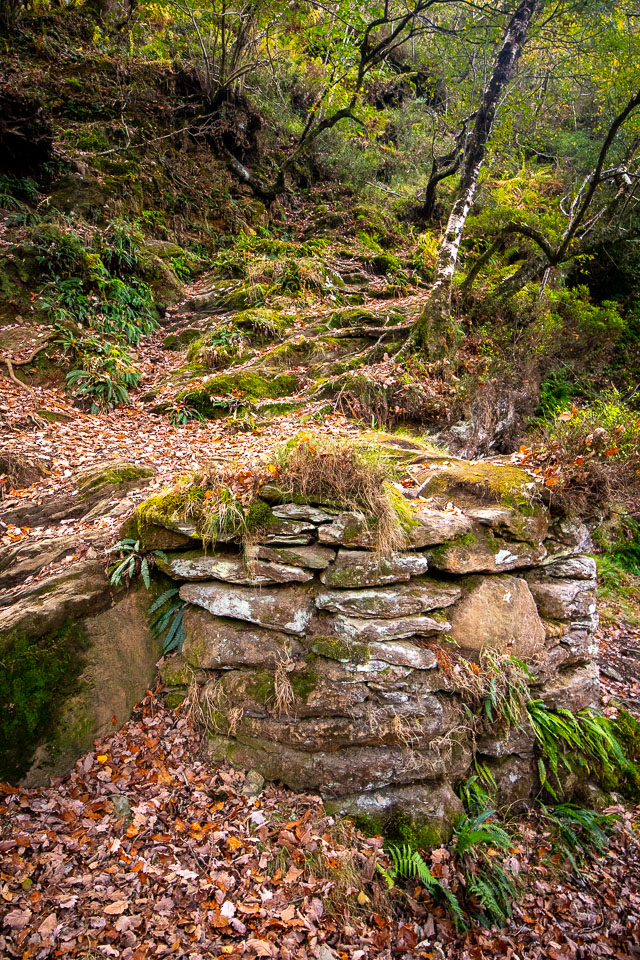 The trail we took (The Spinc trail, the white dots on this map ) climbs up and around the upper lake. The trail first goes though the ruins of Reefert church then climbs steeply up by the Poulanass Waterfall before joining a boardwalk. More than 600 wooden steps lead you to a viewing point overlooking the Upper Lake. A 3 mike long boardwalk skirts the top of the cliffs before descending through blanket bog and heath into the picturesque Glenealo Valley, home to a large herd of deer. A rough track then leads you back down into Glendalough Valley.
