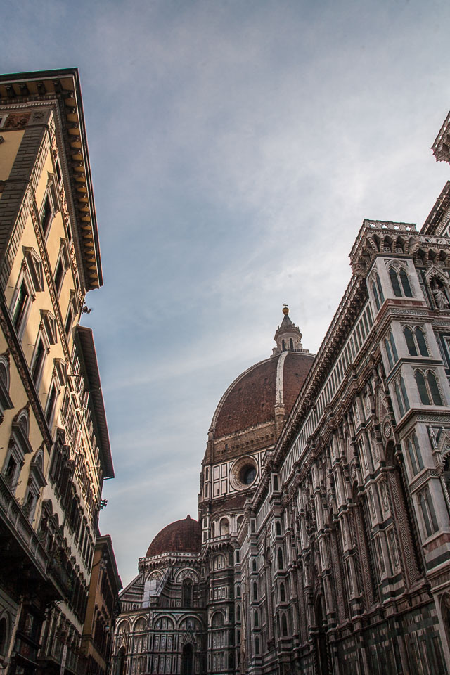 The Duomo (Santa Maria del Fiore,) looms above the streets of Florence, Italy. Taken on October 5, 2012. Filename: 20121005-IMG_1906