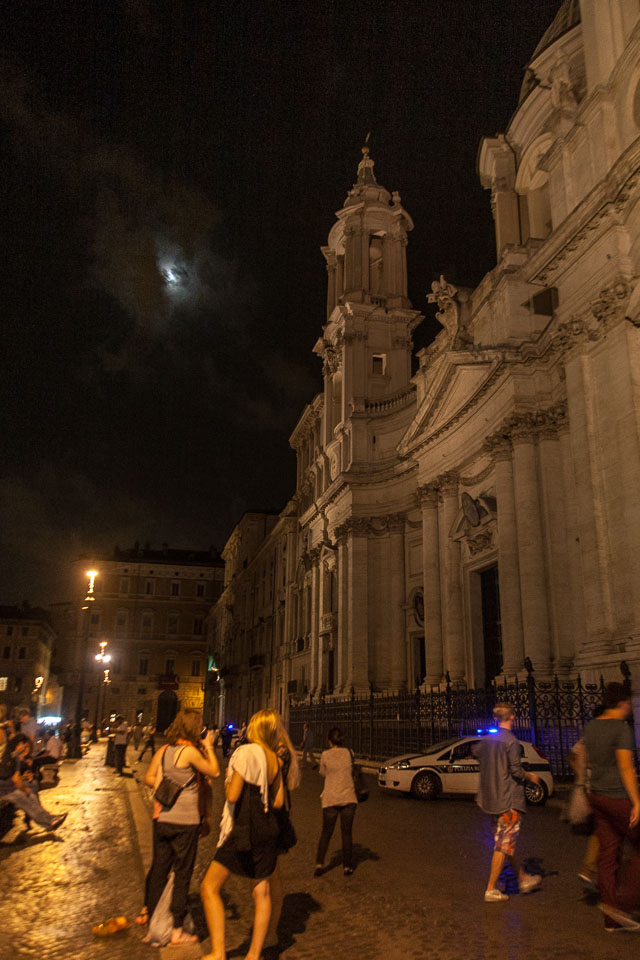 Sant'Agnese in Agone with the waxing moon. Taken on September 24, 2012. Filename: 20120924-IMG_9804