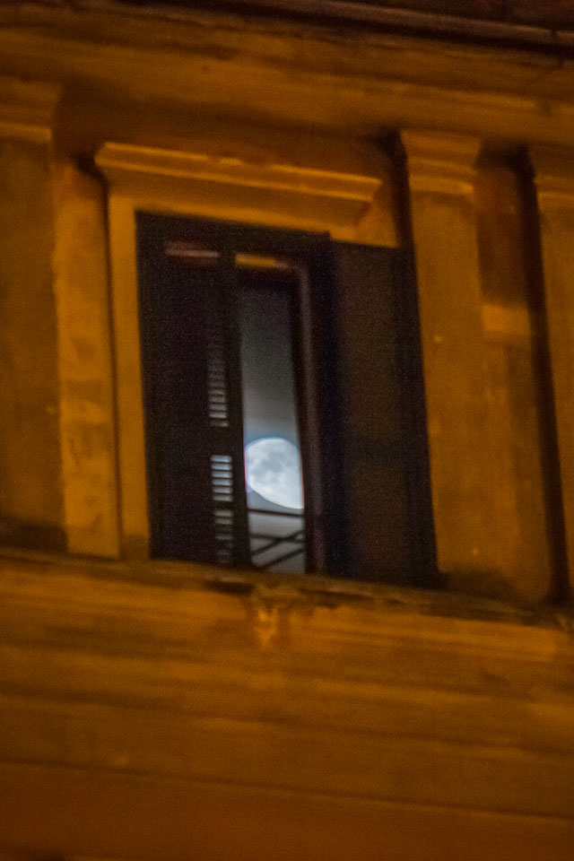Moon reflected in an apartment window in Trastavere. Taken on September 25, 2012. Filename: 20120925-IMG_0275